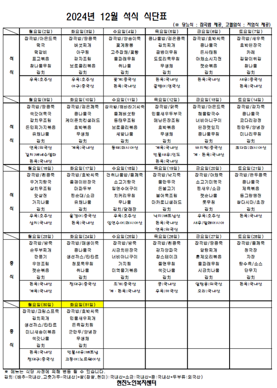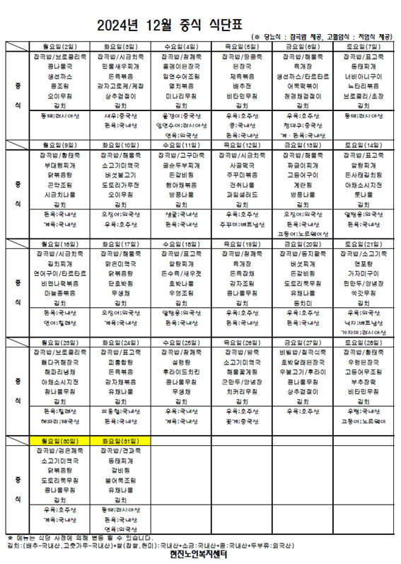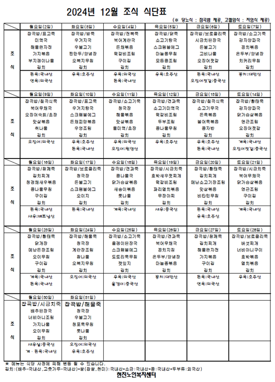 2024³â 12¿ù ½Ä´ÜÇ¥ °øÁö