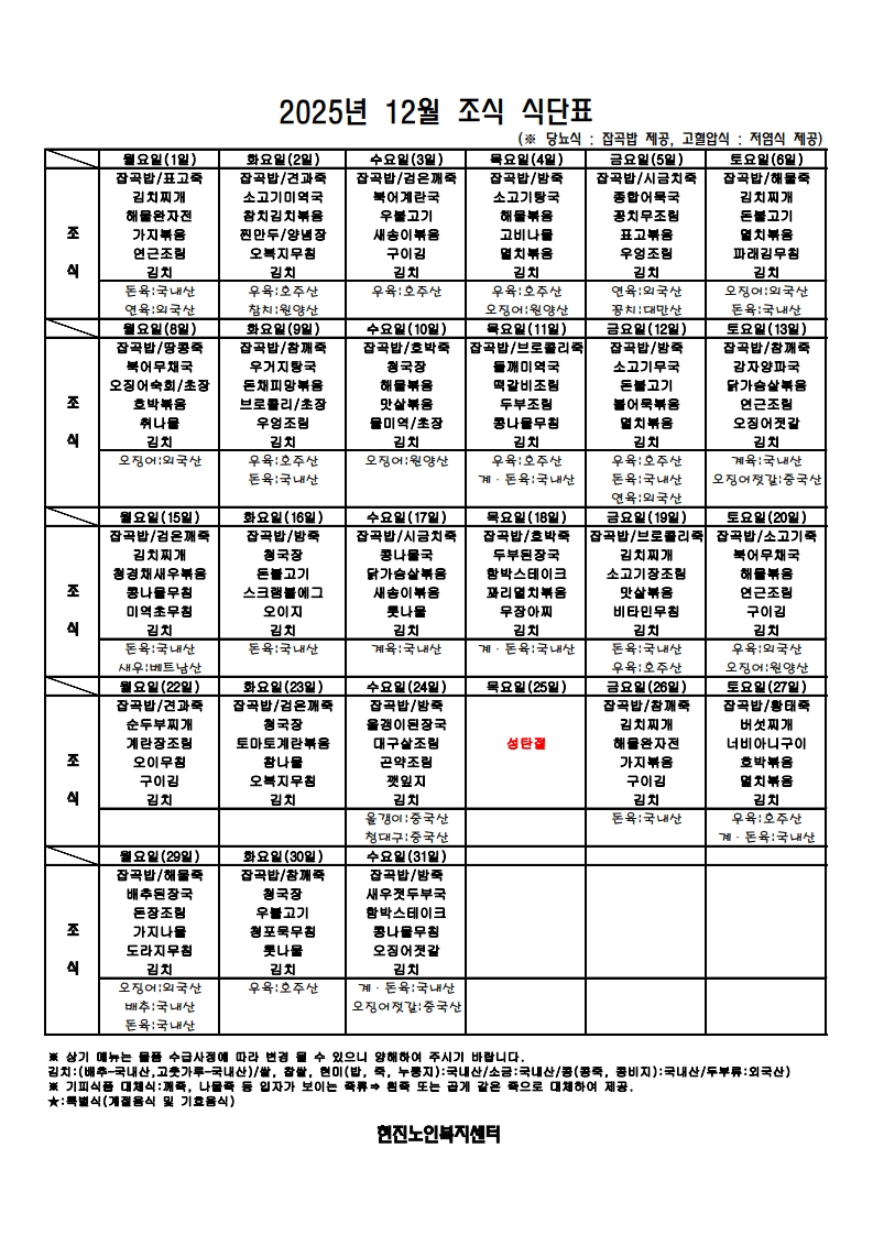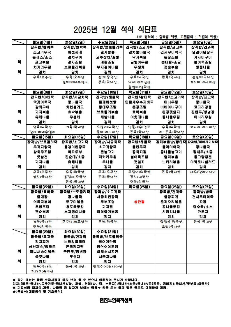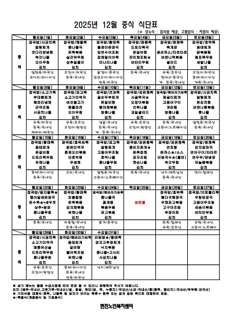 2025³â 12¿ù ½Ä´ÜÇ¥ÀÔ´Ï´Ù.