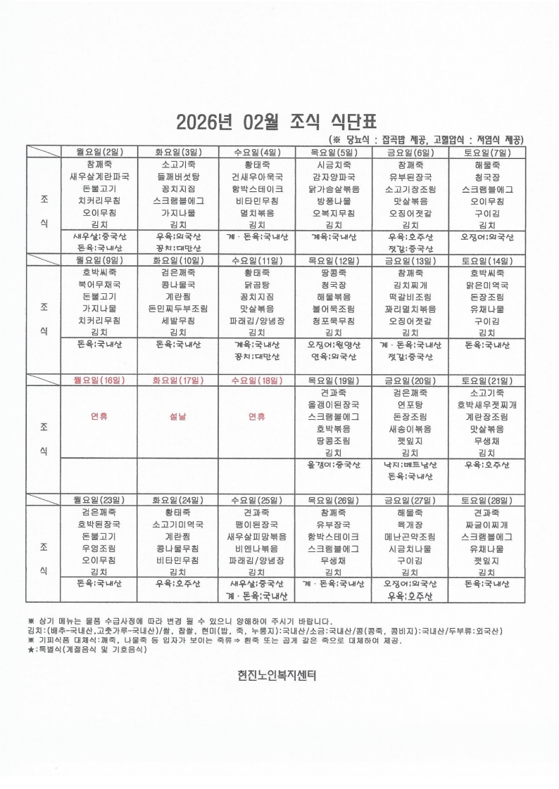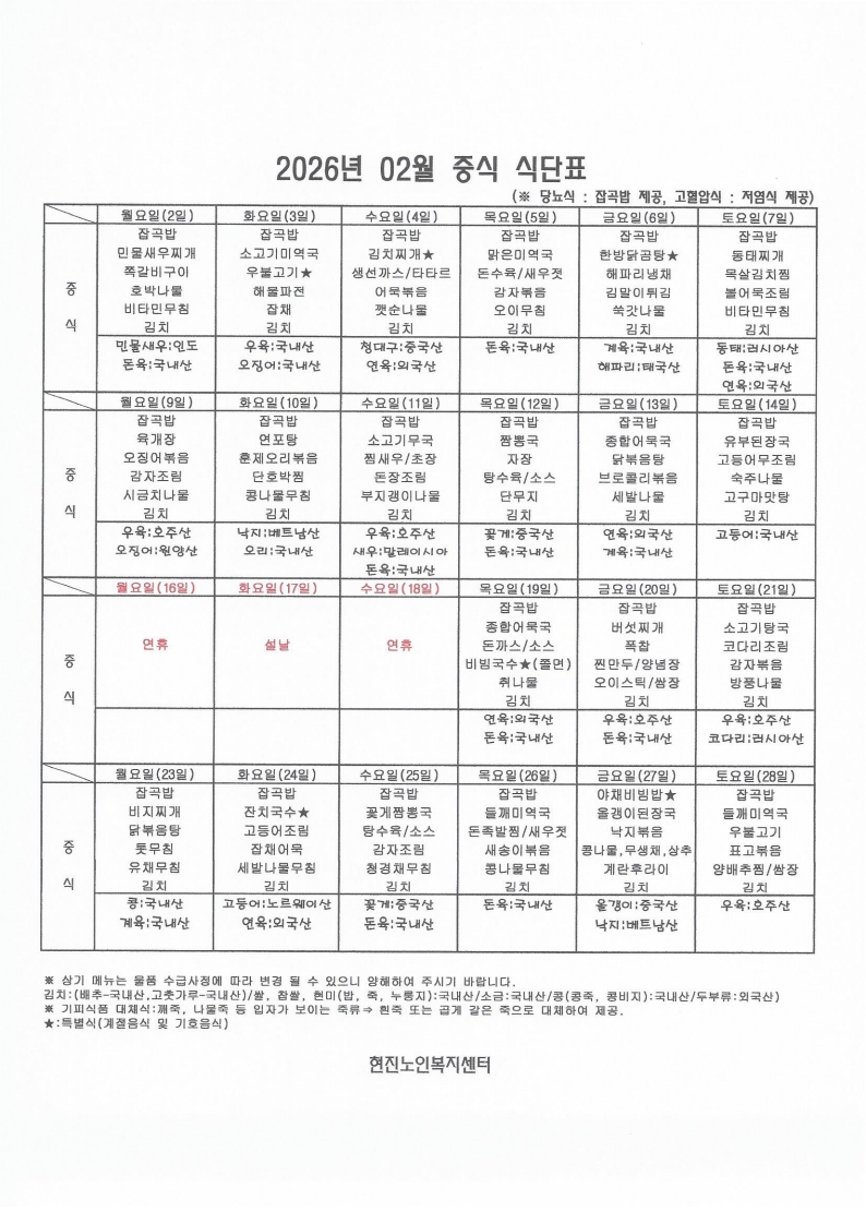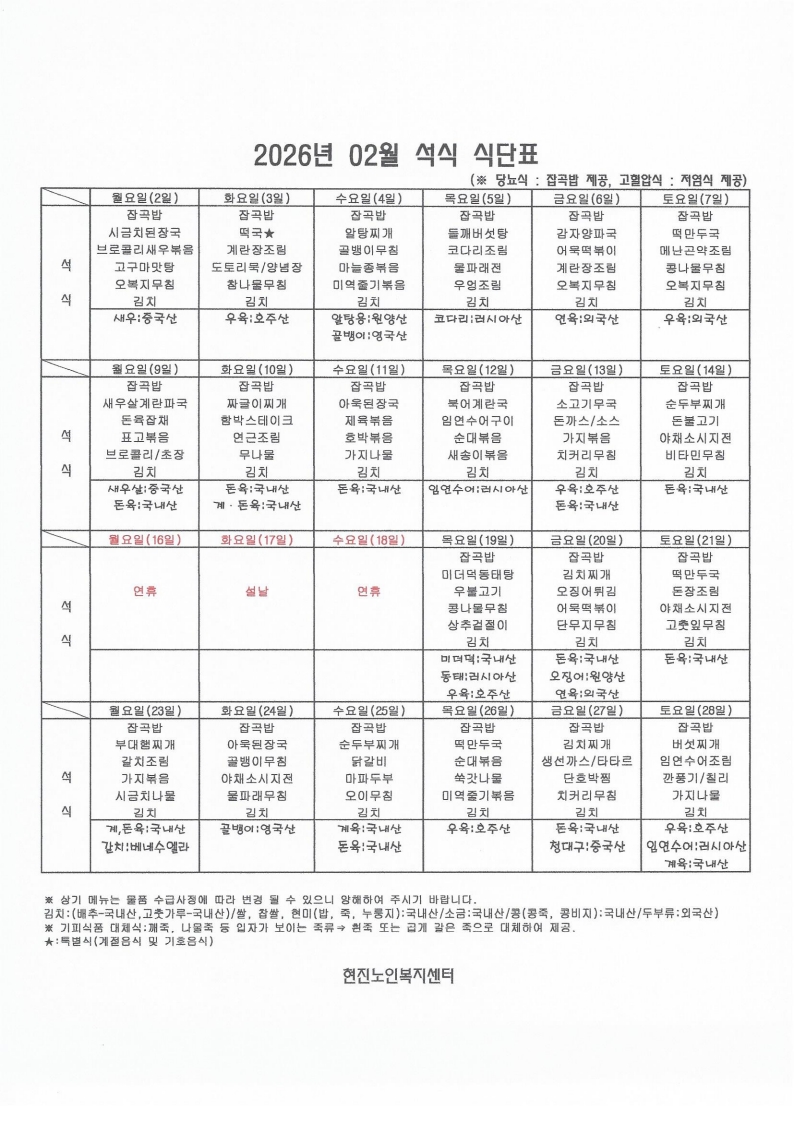 2026³â 2¿ù ½Ä´ÜÇ¥ÀÔ´Ï´Ù.