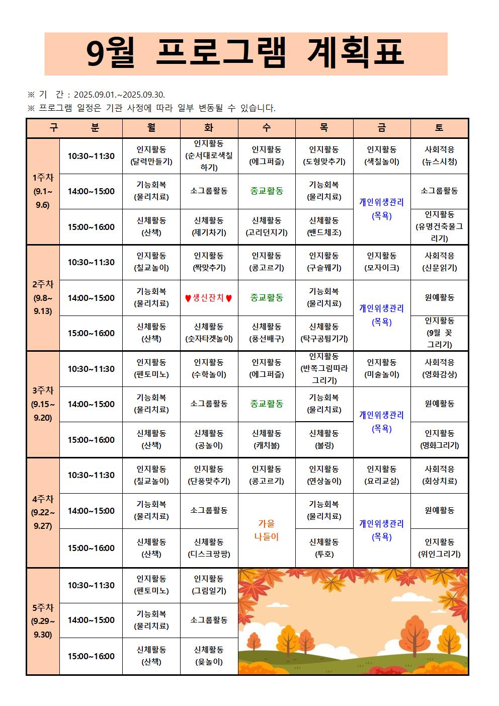 2025³â 9¿ù ÇÁ·Î±×·¥ °èȹǥÀÔ´Ï´Ù.